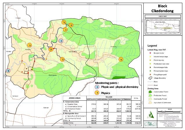 EIA activities started in Block Cikedodong (consists of 4 villages) with identifying environmental factors such as river conditions, biodiversity (vegetation and wild animals) in each land category (e.g. forest, shrub, garden, paddy field, settlement).