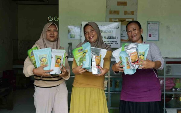 Women of the Bina Patra Lestari group turn jeruju (Acanthus ilicifolius) leaves and putut (Bruguiera gymnorrhiza) fruits – which are readily available in their surroundings – into tasty snacks, promoting sustainable mangrove use while earning additional income.