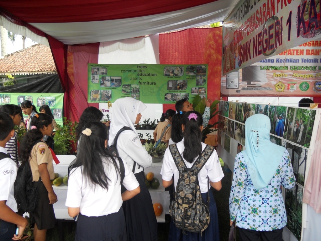 Students in Banyumas visit and observe displays and information on Trees4Trees program developed together with SMKN 1 Kalibagor. Another spot of social event, reforestation program in Pasinggangan village, Banyumas.